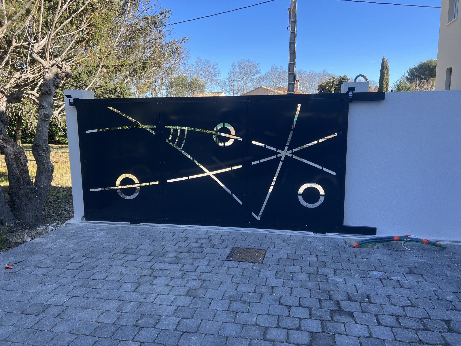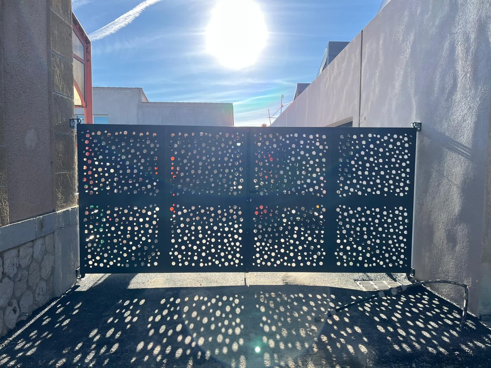 Réalisation d’un portail en acier brut avec découpes laser L5 m x H1,8 m