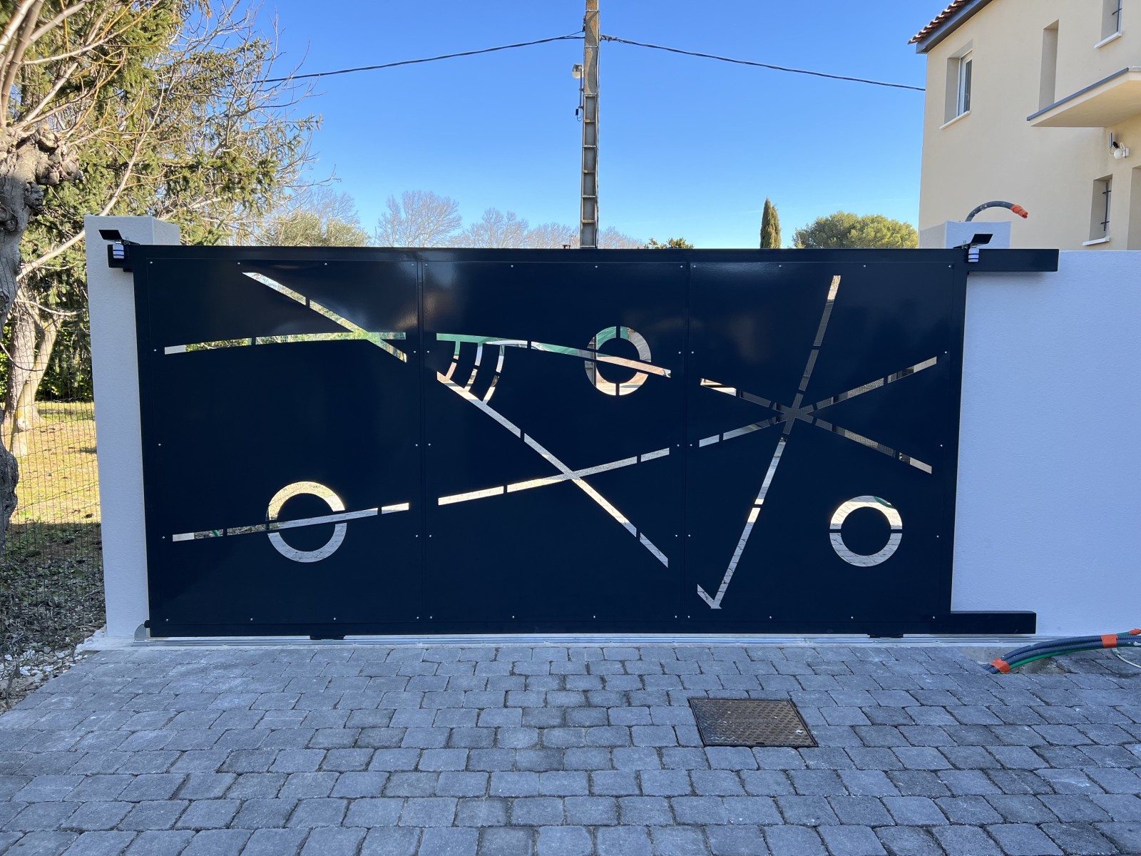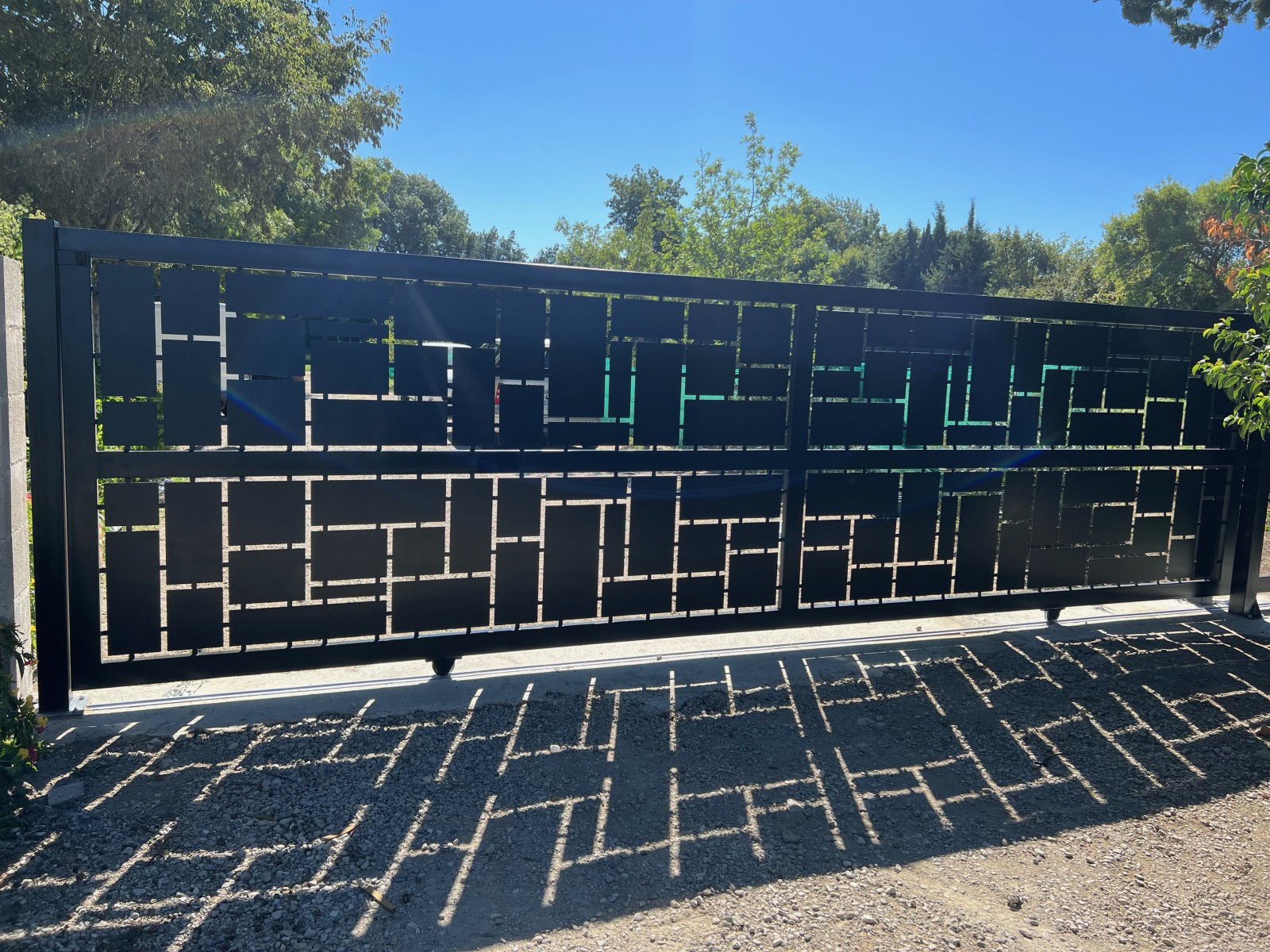 Réalisation d’un portail en acier brut avec découpes laser L3500 x H1800 mm